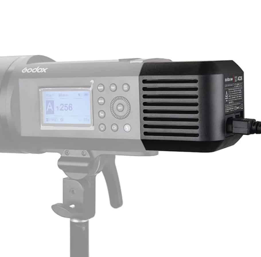 O adaptador AC Godox AC26 é compatível com os Godox AD800Pro / Godox AD600Pro / Godox AD600Pro II / Flashpoint XPLOR 600 Pro. Embora tenha sido originalmente lançado para o AD600Pro, por isso designado da Série AD600Pro Witstro, a Godox padronizou o sistema de montagem de energia para o novo AD800Pro, permitindo a utilização do mesmo acessório.