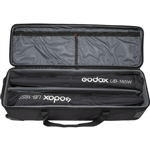 - Armazene, transporte e proteja equipamento fotográfico com até 111 cm de comprimento com o saco de transporte de tripé e suporte de luz com rodas CB-01 preto da Godox. O saco possui fecho de correr, pegas duplas com alça superior de ligação, uma pega de transporte superior, rodas incorporadas e construção em nylon. Um pé de borracha na parte inferior do saco proporciona uma posição vertical. As protecções dos cantos ajudam a proteger o saco contra impactos e abrasão do tecido.
