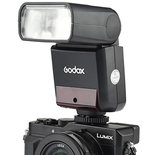 Flash de mão, leve e com flashes profissionais devem ter, este é o Godox350 com bateria de mão, que pequeno e V número guia de 36 a 100 ISO. Este é um flash projetado e ideal para câmaras compactas e sem espelho, embora possa ser usado com a maioria das câmaras DSLR no mercado.