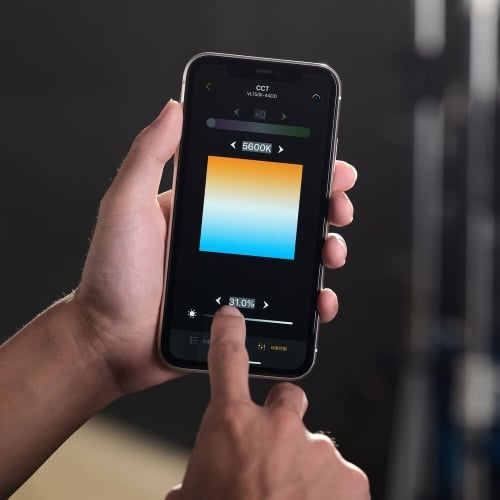 Os LEDs balanceados para luz do dia apresentam classificações CRI e TLCI de 96 para indicar uma reprodução de cores superior e são reguláveis de 0 a 100%. Você pode fazer ajustes de intensidade de luz localmente no equipamento, e ele possui um receptor integrado de 32 canais e 16 grupos que aceitará comandos sem fio de um controle remoto RC-A6 de 2,4 GHz opcional. Você também pode controlar o equipamento sem fio via Bluetooth a partir do seu telefone com o aplicativo Godox.
