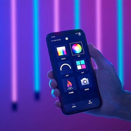 - Controles RGB, HSI, CCT, Gel e FX para uma vasta gama de efeitos criativos