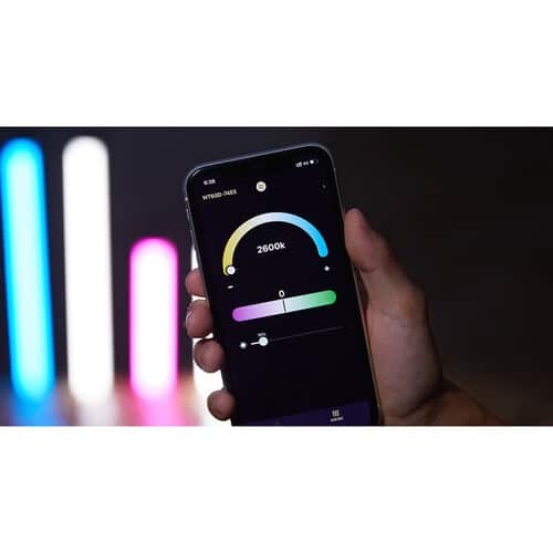 - Modos de iluminação: CCT, HSI, GEL, RGBWW, e FX.