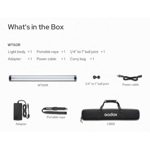 - A Godox WT60R RGB Dive Tube Light foi desenvolvida para iluminar produções fotográficas e de vídeo subaquáticas com facilidade e precisão. Com uma construção robusta e impermeável (IP68), este tubo de 60 cm (25″) oferece uma iluminação consistente debaixo de água, alcançando profundidades até 40 metros. Além de milhares de opções de cor, o WT60R permite criar uma atmosfera única com os seus 37 efeitos de luz predefinidos. O design intuitivo com botões fluorescentes facilita a sua operação, mesmo em completa escuridão, e a sua autonomia assegura uma iluminação contínua por até 2 horas em mergulhos. A luz pode também ser utilizada fora de água, com controlo via Bluetooth, oferecendo uma ampla gama de modos de iluminação para várias aplicações criativas.