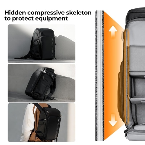 - Mochila fotográfica versátil, organização interior dos espaços em 5:5 e 2:8, para diferentes necessidades.