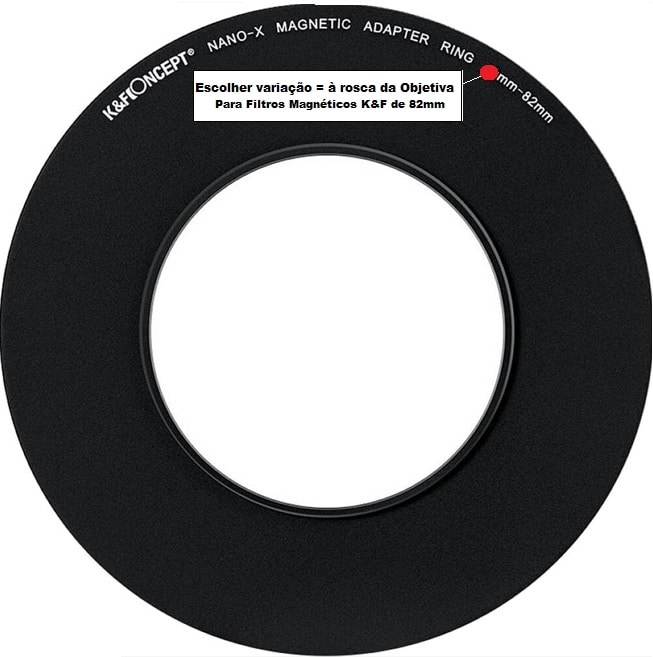 - 1x Anel Adaptador Magnético K&F Concept Nano-X (variação escolhida de acordo com medida da lente), para Filtro magnético de 82 mm
