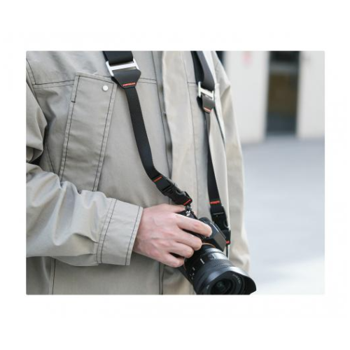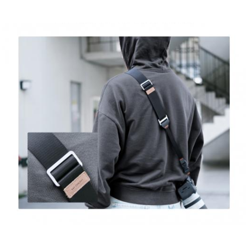 Fabricada com nylon ultrarresistente (semelhante ao material dos cintos de segurança), esta correia de pescoço pode ser utilizada como correia de ombro, pescoço ou tiracolo, adaptando-se facilmente a diferentes cenários.
