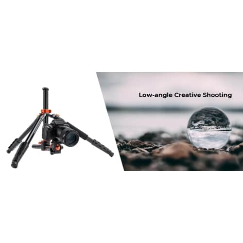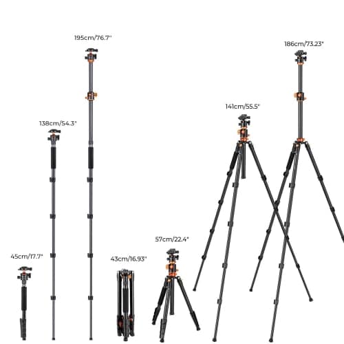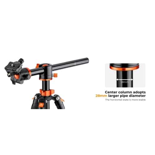 O tripé de alumínio K&F Concept KF09.112 T255A3+BH28L pode ser rapidamente desmontado com o parafuso do eixo central e transformado num monopé, proporcionando uma forma alternativa de fotografar com facilidade.