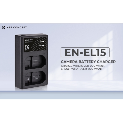 K&F CONCEPT KF28.0006 Carregador Rápido Duplo EN-EL15 p/Nikon