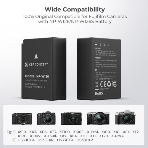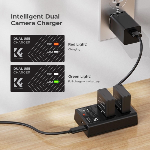 K&F CONCEPT KF28.0030 Kit Carregador duplo +2 baterias NP-W126