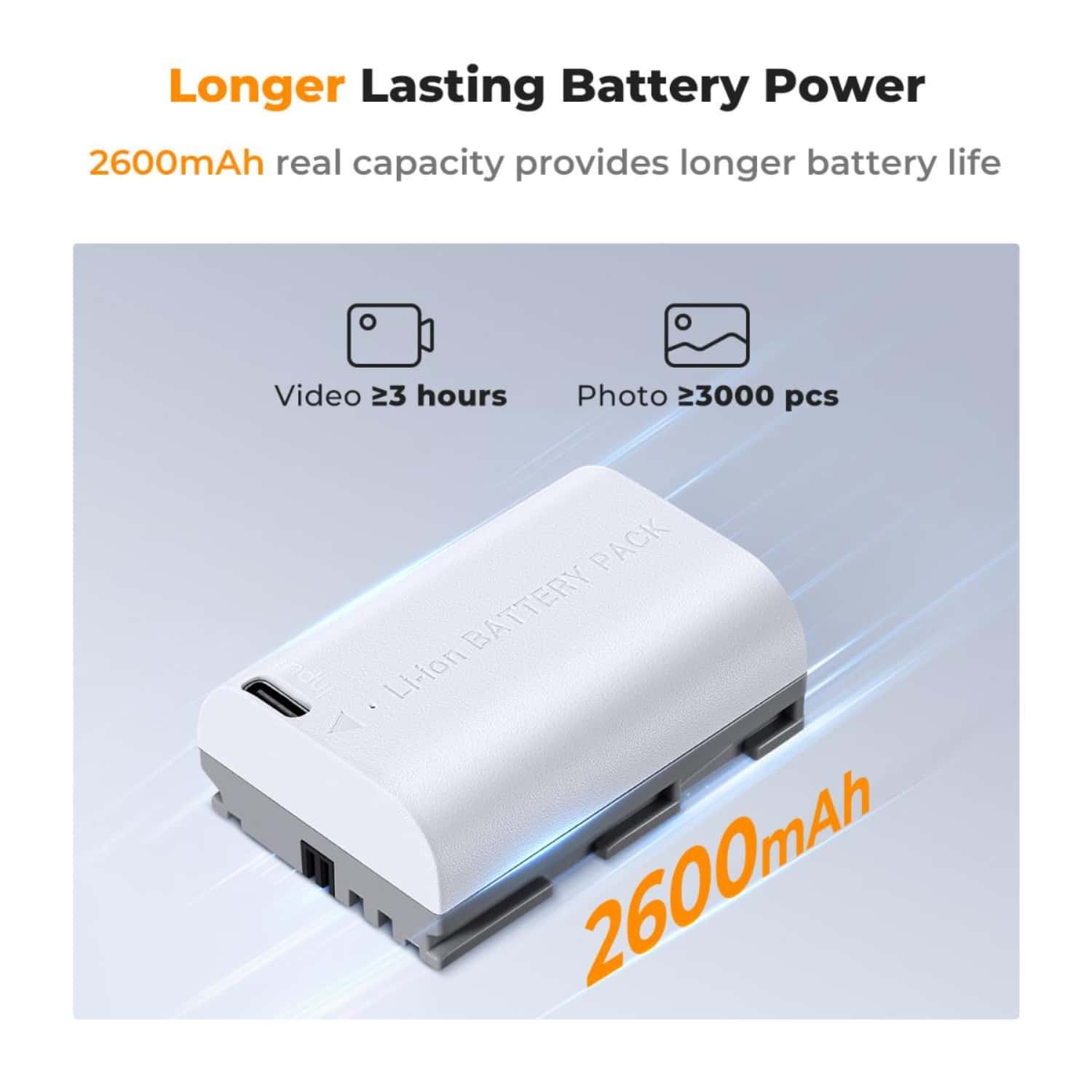 - Pode ser carregado diretamente com o cabo de carregamento Tipo C e também é compatível com o carregador dedicado LP-E6NH; ele pode ser carregado por carregador de parede USB, carregador de carro ou energia móvel externa. Há uma luz indicadora de carga na bateria, a luz vermelha significa carregamento em andamento, a luz verde significa totalmente carregada.