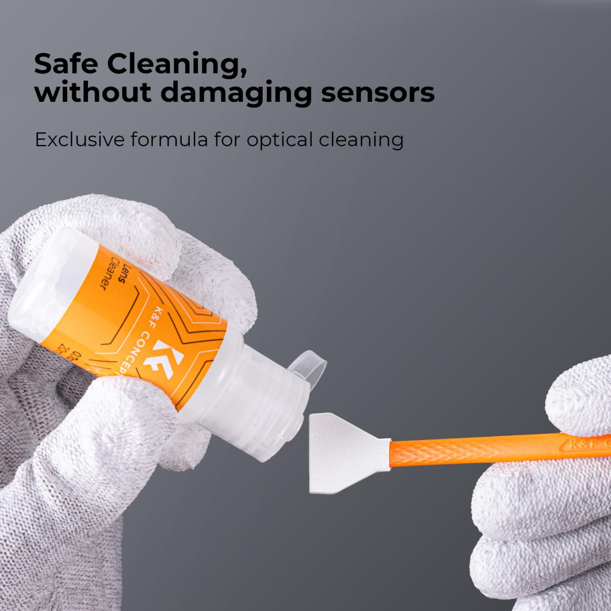 K&F CONCEPT Kit de Limpeza Sensor APS-C c/Bastões Duplos + Líquido 20ml SKU.1964