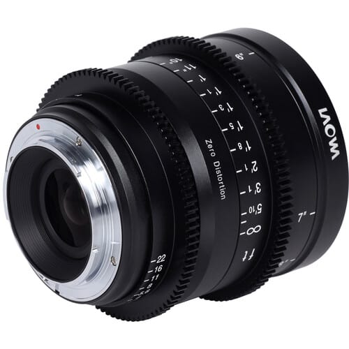 A objectiva Laowa 15mm T2.1 Zero-D Cine Lens da Venus Optics é marcada em metros* e fornece um amplo ângulo de visão de 110° adequado para gravações ao ar livre e de paisagens ou locais internos apertados, e é otimizada para sensores full frame. É leve e compacta, por isso é adequada tanto para utilização manual, com gimbal ou montado em tripé.
