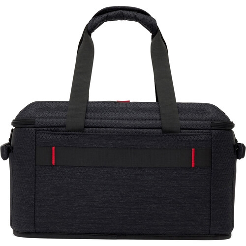 Três organizadores estão estrategicamente posicionados na parede externa do bolso para armazenar equipamentos menores de maneira organizada e um zíper oculto na parede traseira da bolsa revela espaço traseiro extra para armazenar um bloco de notas ou uma placa de produção. A correia lateral traseira e inferior permite um transporte seguro e sem preocupações em um rolo.