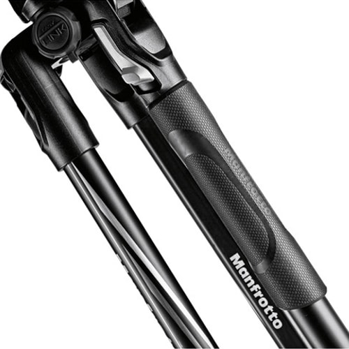 Cada perna do Befree Advanced é composta por quatro seções, que podem ser ajustadas e travadas com segurança no lugar com as travas da alavanca QPL encontradas em todos os segmentos. Um seletor de tração lateral permite que você configure o tripé em três configurações de ângulo diferentes, permitindo fotografar em ângulo baixo com o simples toque de um botão. Complementando as pernas, há uma cabeça esférica central igualmente robusta, que oferece um botão dedicado para movimento panorâmico, bem como um botão de controle de fricção para controle preciso sobre a tensão durante o uso. O elemento final é uma placa de liberação rápida, que oferece compatibilidade dupla para sistemas compatíveis com RC2 e Arca, exceto para as cabeças de tripé Manfrotto 804-3W e MH804-3W.