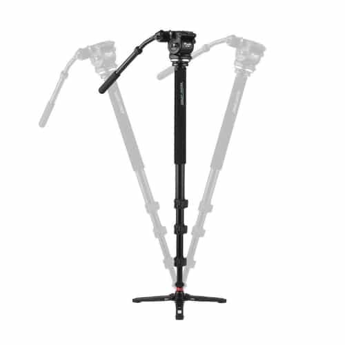 - Cabeça de vídeo fluída com pega para movimentos suaves.