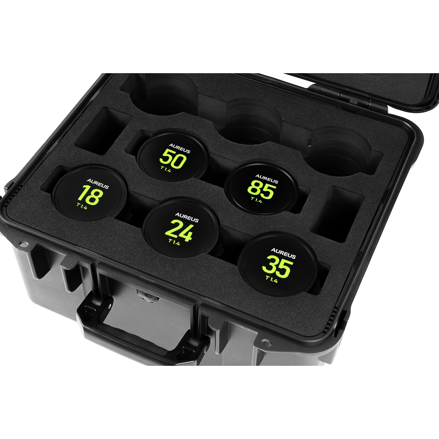 O conjunto é acondicionado num estojo rígido resistente, que garante transporte seguro e acesso rápido em rodagem. Quer esteja a trabalhar em estúdio controlado ou em exteriores com tempo e equipamento limitados, a AUREUS oferece a fiabilidade e qualidade de imagem que os cineastas profissionais exigem.
