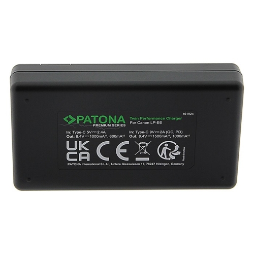 Patona Carregador PD Premium Duplo USB para Canon LP-E6