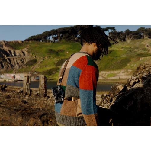 - Esta correia de nylon de 3,2 cm de largura é almofadada internamente para maior conforto e tem um lado liso para deslizar a câmara para o olho quando configurada como uma funda e um lado de silicone que evita que escorregue quando a utiliza no pescoço ou no ombro. Os quatro pontos de ancoragem incluídos podem ser fixados e retirados da correia com uma única mão e deixados nos ilhós para que possa alternar facilmente entre câmaras enquanto fotografa.