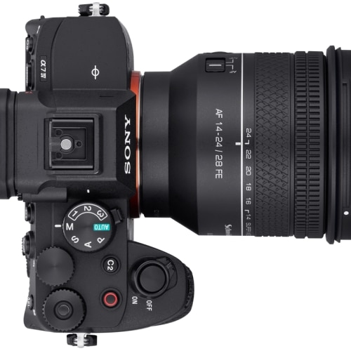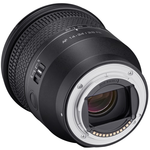 - A SAMYANG AF 14-24mm f/2.8 FE é uma objetiva zoom ultra grande angular, compacta, leve e potente, desenhada para câmaras Sony full-frame com montagem E. Desenvolvida em colaboração com a Schneider-Kreuznach, oferece uma combinação única de qualidade ótica e desempenho prático.