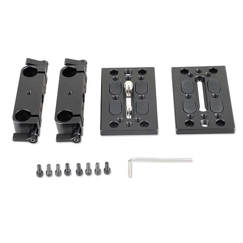 Kit de montagem de tripé SmallRig com bloco de trilho de 15 mm 1798 é combinado por duas placas de montagem de tripé SmallRig com bloco de trilho de 15 mm. Usado para pacotes de câmera de comprimento longo e frontal pesado. Anexe-o à placa do tripé com um parafuso de 3/8”-16 e um parafuso de 1/4”-20, então você pode montar sua placa de base de cauda de andorinha nela. Ele é fixado em trilhos de 15 mm para fixação de acessórios, como follow focus, matte box, etc. A ranhura de 40 mm possibilita o equilíbrio adequado de uma câmera frontal pesada em seu tripé.