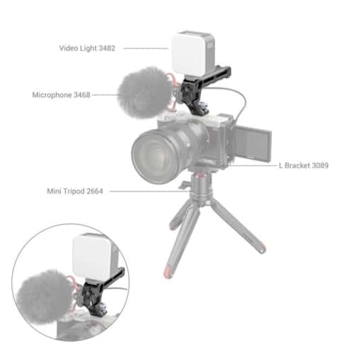 Inclui 5 encaixes cold shoe integrados para microfone, luz LED, monitor, etc.