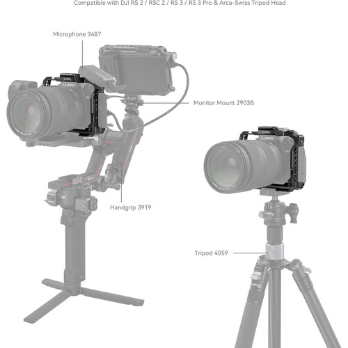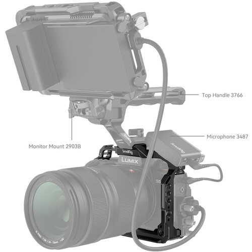 Expanda os recursos da sua câmera mirrorless Panasonic Lumix S5 II ou S5 IIX com o Camera Cage da SmallRig . Projetado para montar com segurança no corpo da câmera, ele fornece uma estrutura protetora para conectar todos os tipos de acessórios por meio de suas roscas de 1/4″-20 e 3/8″-16, dois trilhos NATO na parte superior e lateral e dois suportes de sapata. Seu design de trava de três pontos evita que a câmera se mova ou gire dentro da cage.