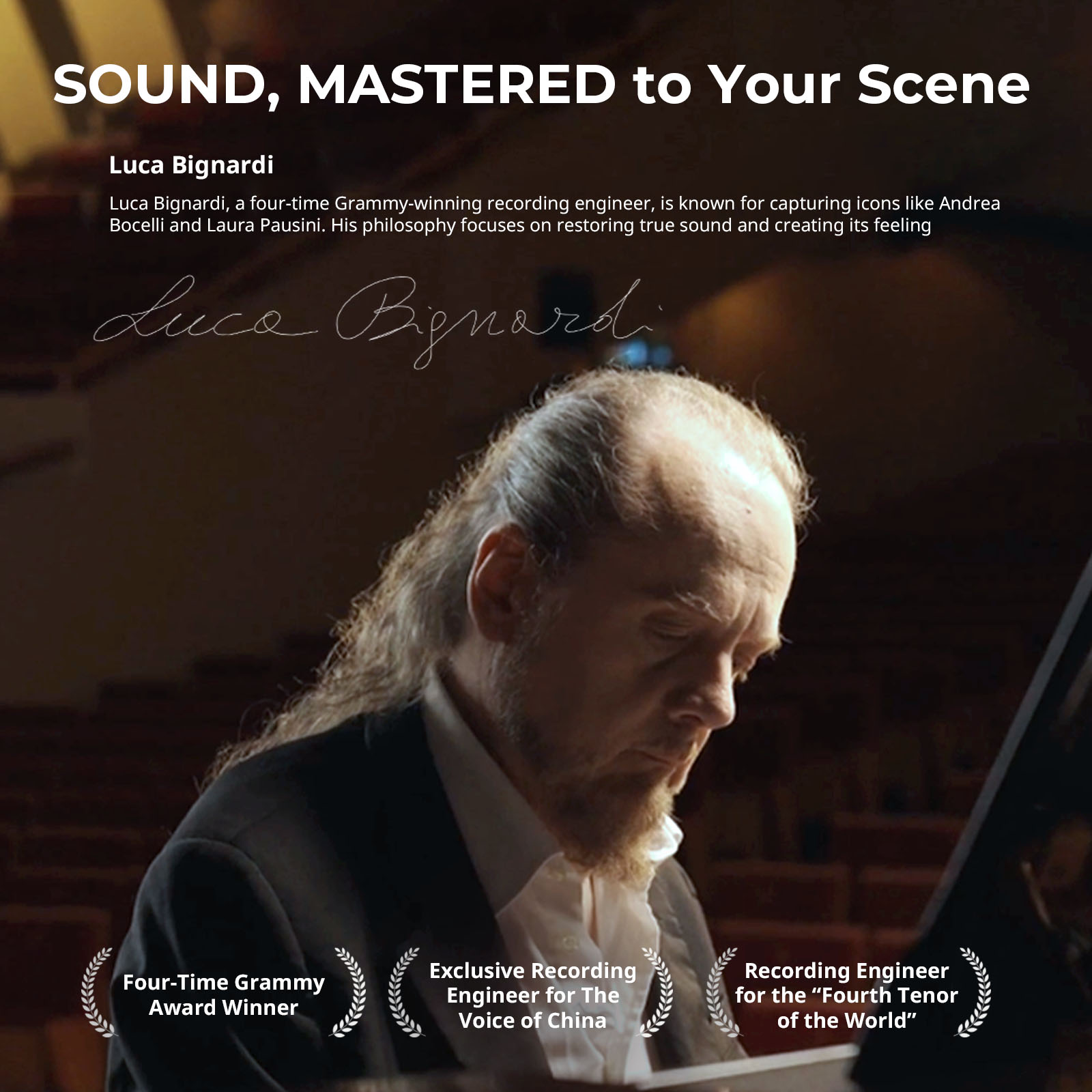 O sistema suporta gravação a 48 kHz / 24 bits com limitador automático, assegurando clareza e proteção contra picos de áudio. Inclui 9 modos de equalização predefinidos (geral, rico, brilhante, masculino, feminino, canto, guitarra, violino e ambiente), 3 níveis de redução de ruído e controlo de ganho ajustável para adaptação total a diferentes ambientes.