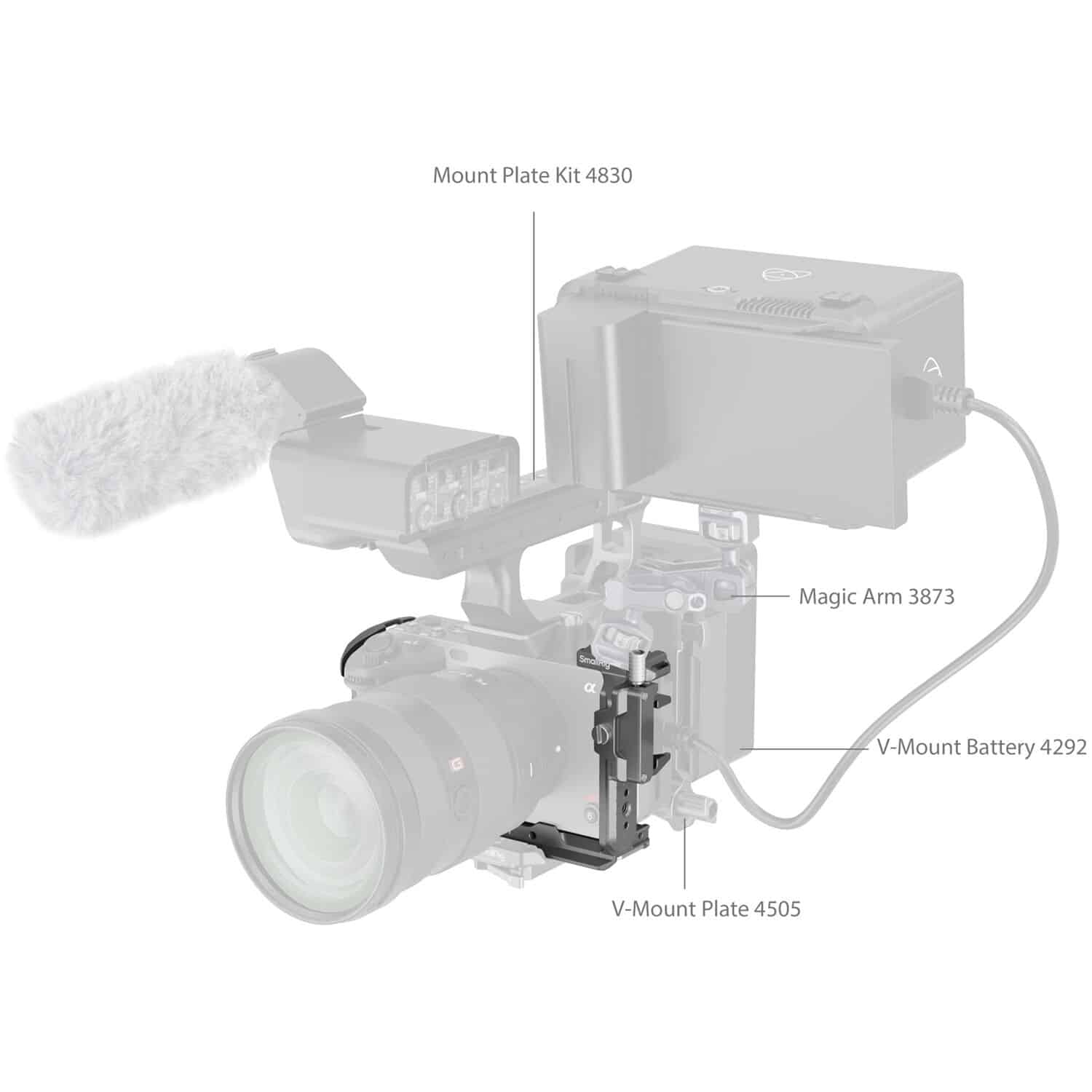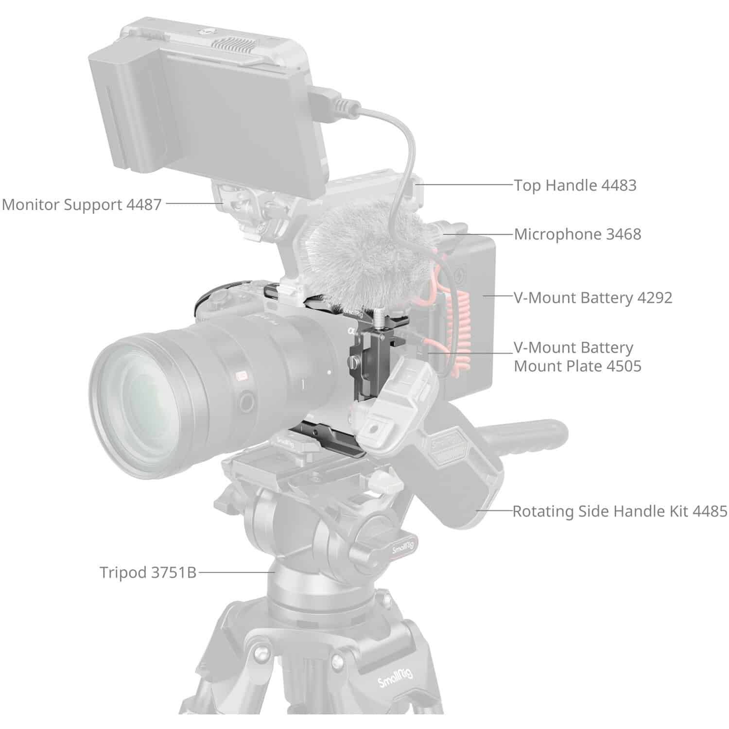 A base integrada tipo Arca permite montagem direta em tripés compatíveis, enquanto as múltiplas roscas de 1/4″-20 e 3/8″-16, bem como os pontos ARRI anti-twist, asseguram opções ilimitadas para acoplar acessórios como monitores, microfones, braços articulados ou luzes LED.