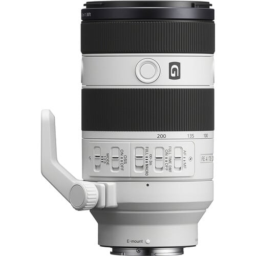 A FE 70-200mm f/4 GM OSS II é compatível com os teleconversores opcionais FE 1.4x e 2.0x da Sony. Esses teleconversores permitem fotografia macro 1:1 em tamanho real em toda a faixa de zoom. Quando usados, os teleconversores de 1,4x e 2,0x fornecerão distâncias focais efetivas e aberturas de 98-280mm f/5.6 e 140-400mm f/8, respectivamente.