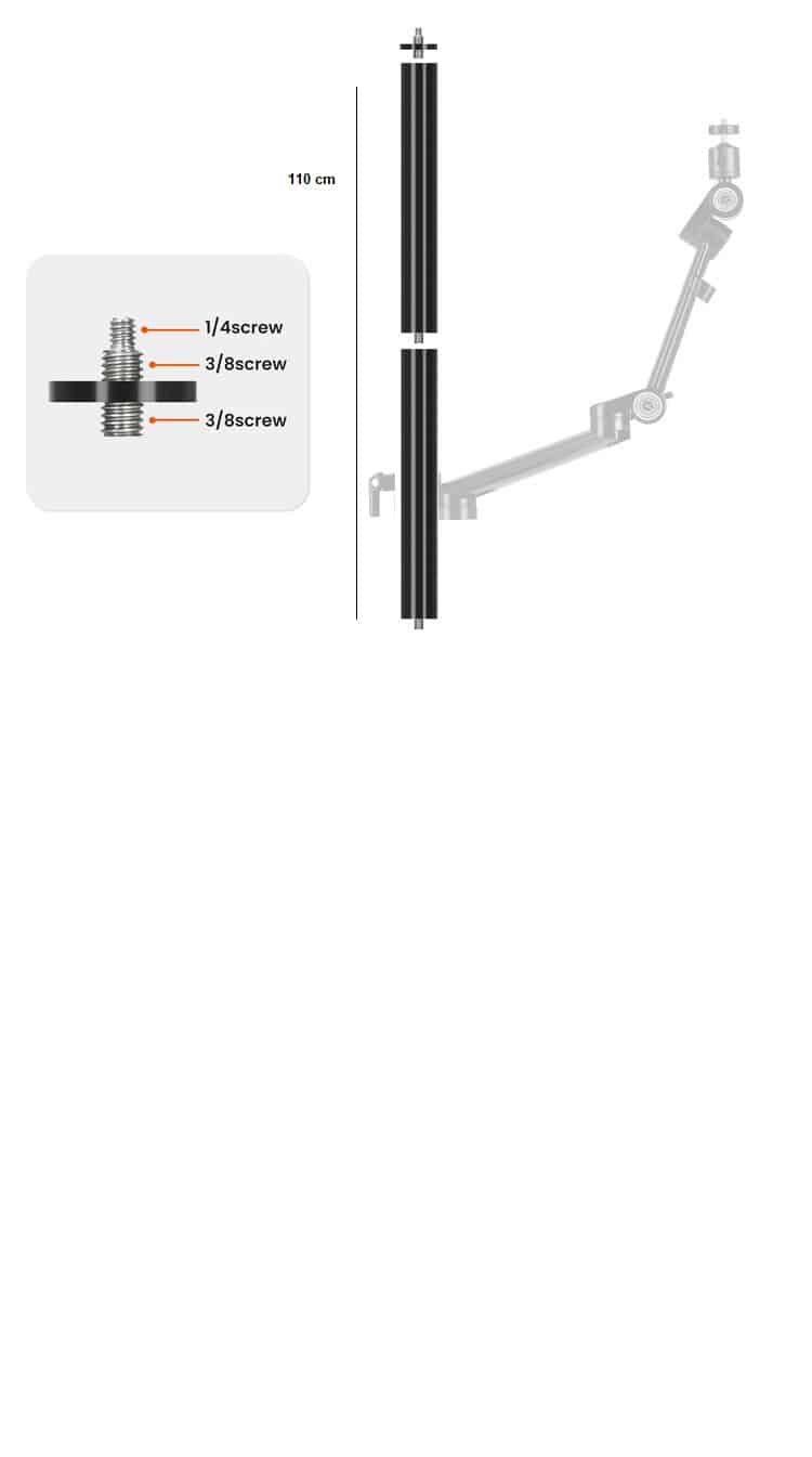 • Inclui duas hastes de 55 cm (21,6″) que formam uma extensão total de 110 cm
