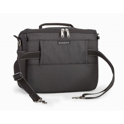 O grande bolso frontal com fecho oferece armazenamento ideal para todos os acessórios (cartões de memória, pequenos cabos, baterias, etc.). Uma aba com fecho magnético fornece proteção adicional.O Mirrorless pode ser usado no ombro ou no cinto. Capa de chuva incuída.