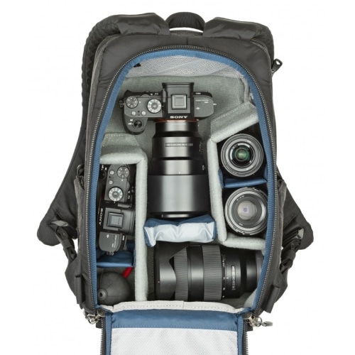 O painel traseiro de abertura da BackStory 13 fornece acesso total ao seu equipamento.