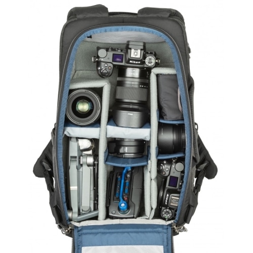 O painel traseiro de abertura da BackStory 15 fornece acesso total ao seu equipamento.