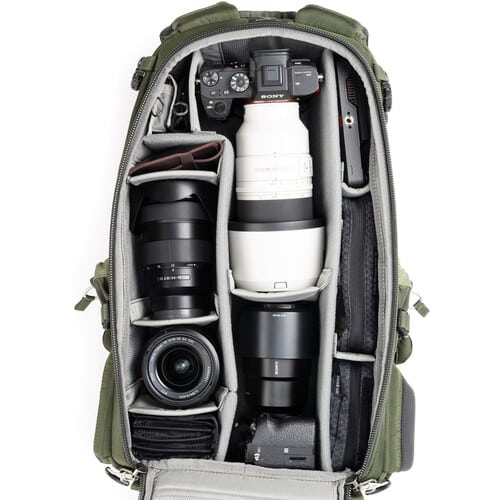 - A mochila Think Tank BackLight® Sprint Slate Black é uma opção leve e eficiente para fotógrafos que precisam de transportar o seu equipamento de forma organizada e confortável. Com capacidade de 15 litros, esta mochila é ideal para uma câmara DSLR de tamanho standard com 1 a 3 lentes de zoom ou até 6 lentes prime. O acesso traseiro ao equipamento permite que o utilizador trabalhe sem sujar as alças da mochila, tornando-a perfeita para condições adversas. O bolso frontal de 2 litros é ideal para armazenar itens pessoais, enquanto as divisórias ajustáveis no interior permitem personalizar o espaço conforme necessário.