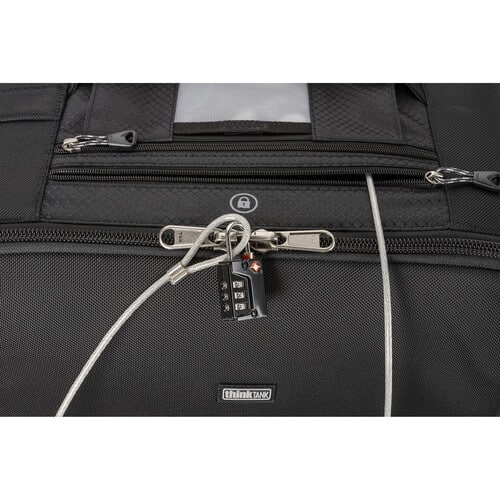 - O cabo de segurança incluído e o bloqueio de combinação permitem trancar o zíper no compartimento principal e prender a bolsa a um objeto fixo.