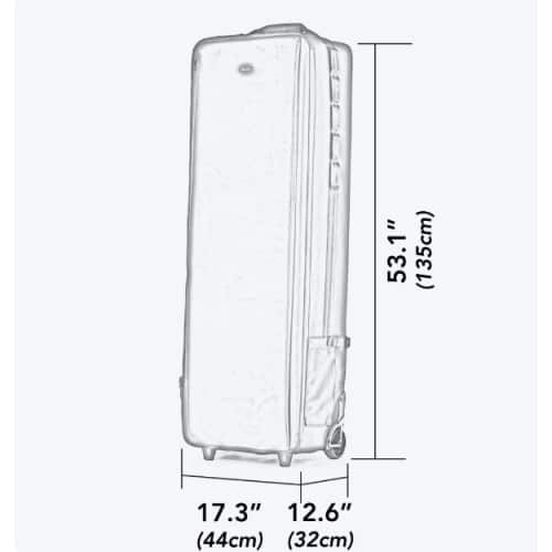 - Grande bolso com zíper na frente da tampa para refletores, guarda-chuvas, extensões, cabos, etc.