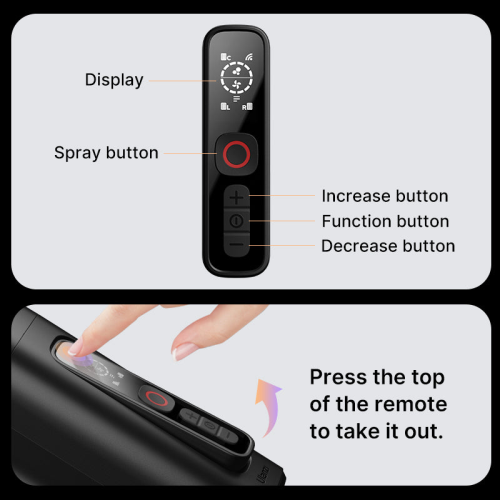 Um botão físico ou (caso aplicável) comando remoto para ligar/desligar a emissão de fumo, tornando a operação simples e intuitiva. Ajuste imediato de intensidade e duração do fumo. -