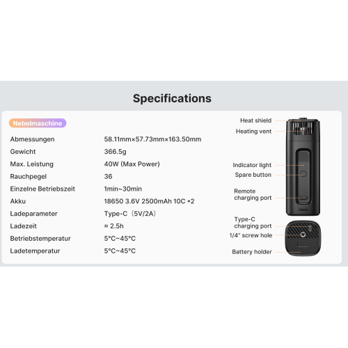 - 1 × Ulanzi FilMog Ace Portable Fog Machine R001