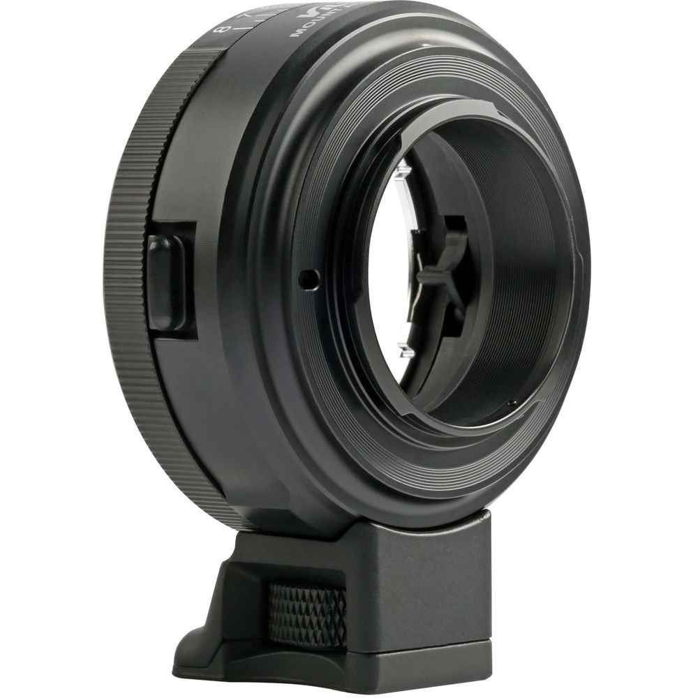 Este adaptador de montagem de lente da Viltrox foi projetado para permitir que uma lente Nikon F-mount, tipo D ou G seja usada com uma câmara de montagem Micro Four Thirds. Ele suporta foco manual, bem como controlo de abertura em oito stops. A parte inferior do pé do tripé é rosqueada com uma rosca acessória de 1/4″-20, proporcionando fixação direta a um tripé ou placa de liberação rápida que possui uma montagem de 1/4″-20.