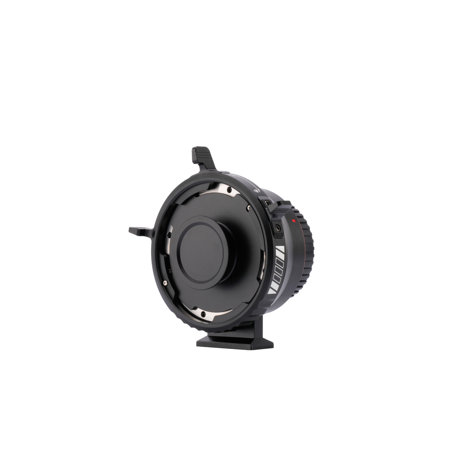 A construção em liga metálica de alta qualidade garante um encaixe preciso e seguro entre a lente e a câmara, reduzindo folgas e minimizando vibrações, especialmente importante em gravações de vídeo. O interior com design antirreflexo foi cuidadosamente concebido para reduzir flares e reflexos indesejados, contribuindo para imagens mais limpas e contrastadas.