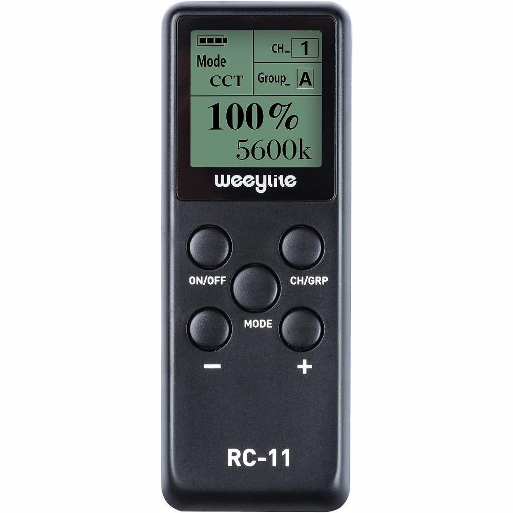 Controle a sua iluminação de video Weeylite compatível com este controlo remoto RC-11 de frequência 2,4GHz. Permite trabalhar com 20 canais e 6 grupos, a uma distância de até 30 metros (consoante a existência e interferências pelo meio).