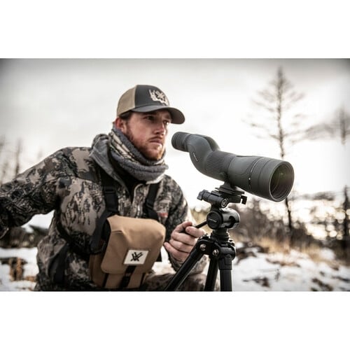 - O seu sistema de montagem inclui uma tomada padrão de 1/4″-20″ e a sapata é compatível com o estilo Arca-Swiss, o que significa que pode ser montado diretamente numa cabeça Arca-Swiss sem necessidade de placas adicionais. O seu colar de montagem também pode ser rodado em incrementos de 45° para uma colocação precisa da ocular e um conforto de visualização optimizado. O chassis do Diamondback é cheio de árgon e vedado com O-ring para ser à prova de água e resistente ao embaciamento interno quando se desloca através de mudanças extremas de temperatura e condições ambientais. Um para-sol retrátil evita o reflexo da lente que pode assustar animais e mantém a chuva e a neve afastadas da objetiva para garantir uma visão nítida em condições meteorológicas menos que ideais. A Vortex inclui um estojo de neopreno simples que oferece uma maior proteção contra choques e humidade. As tampas da ocular e da objetiva com fio oferecem proteção e evitam a sua perda quando se utiliza o observador.
